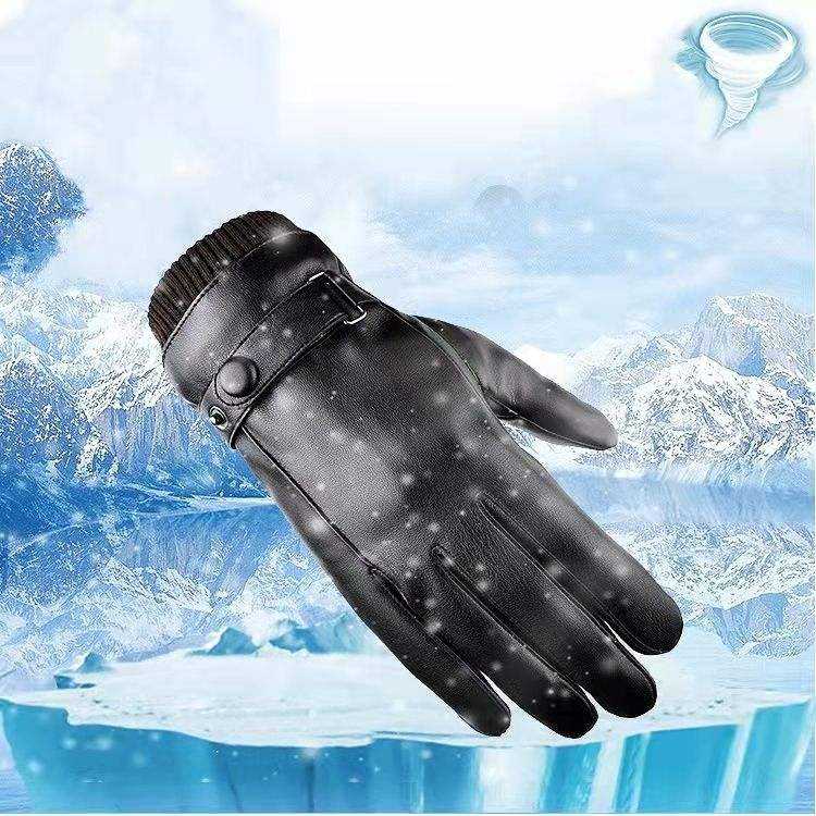 หนังสีดำทนทานป้องกันรังสียูวีกันลื่นทนทานต่อการสึกหรอหนังแกะที่ให้ความอบอุ่นสำหรับฤดูหนาวขับขี่ขี่จักรยานขี่มอเตอร์แข่งขี่จักรยานขี่
