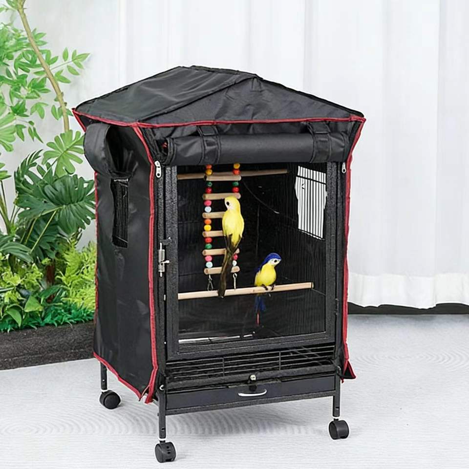 ผ้าคลุมกรงนกแบบทนทาน ระบายอากาศได้ดี ซักล้างได้ ถาดพลาสติกแบบมีซิป สีดำล้วน กันน้ำ สไตล์โมเดิร์น