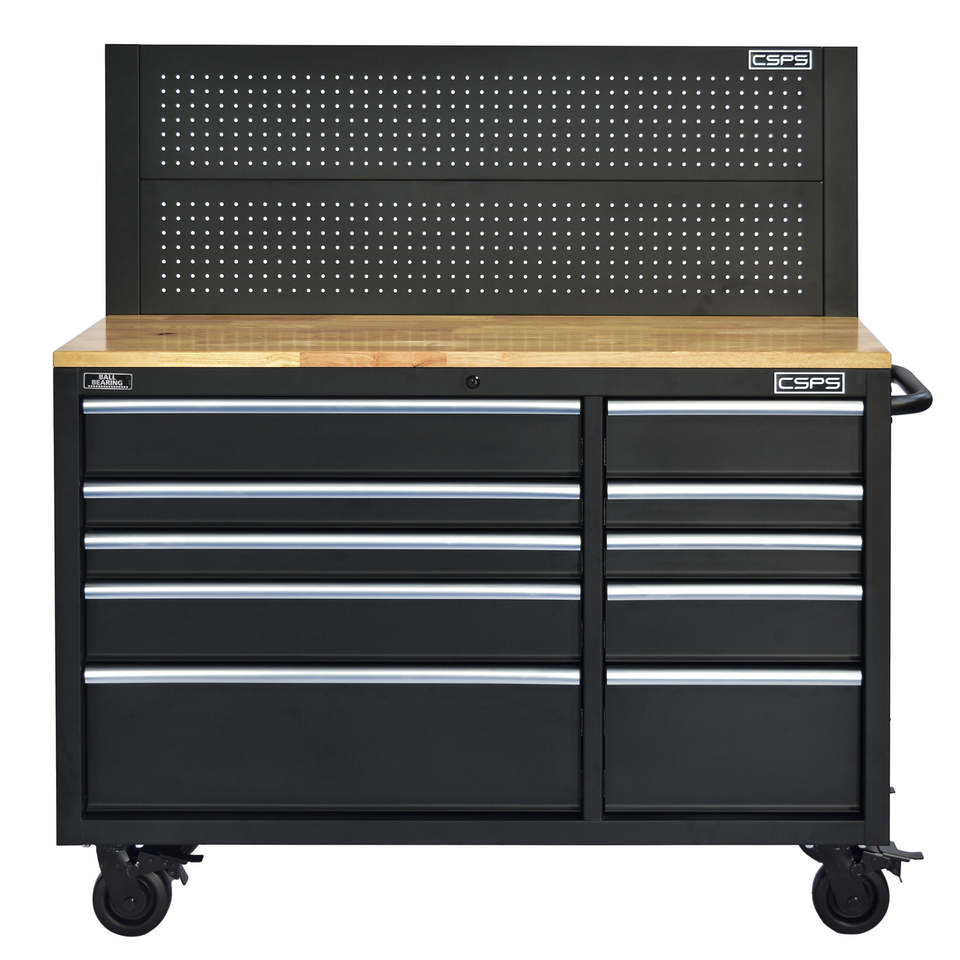 ตู้เครื่องมือ CSPS ทนทาน ขนาด 132 ซม. 10 ลิ้นชัก เหล็กเคลือบสีฝุ่น สีดำ พร้อมกุญแจล็อคแบบ OEM รับประกัน 2 ปี สำหรับโรงงาน/อู่ซ่อม