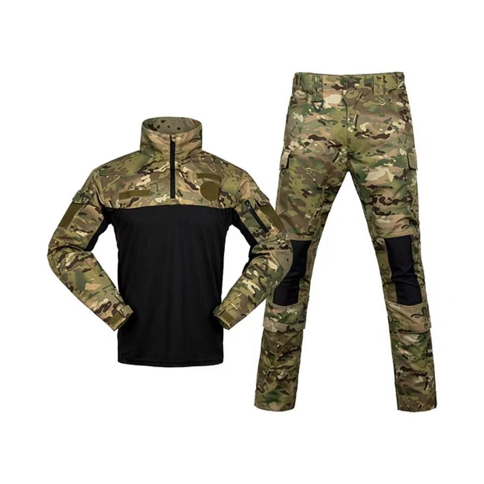 ชุดเครื่องแบบลายพรางสำหรับผู้ชายชุดเครื่องแบบยุทธวิธีลายพรางมีกระเป๋าหลายกระเป๋าที่รัดเข่าทนทาน