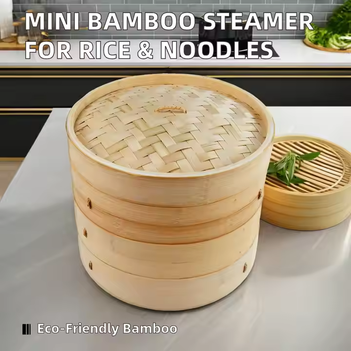 ชุดตะกร้านึ่ง2ชั้นทำจากไม้ไผ่จีนเป็นมิตรกับสิ่งแวดล้อมพร้อมที่จับด้านข้างสำหรับเตาแก๊สและเตาเหนี่ยวนำความจุ2L