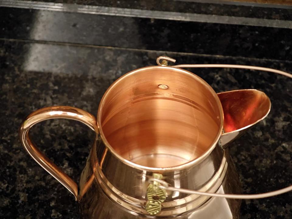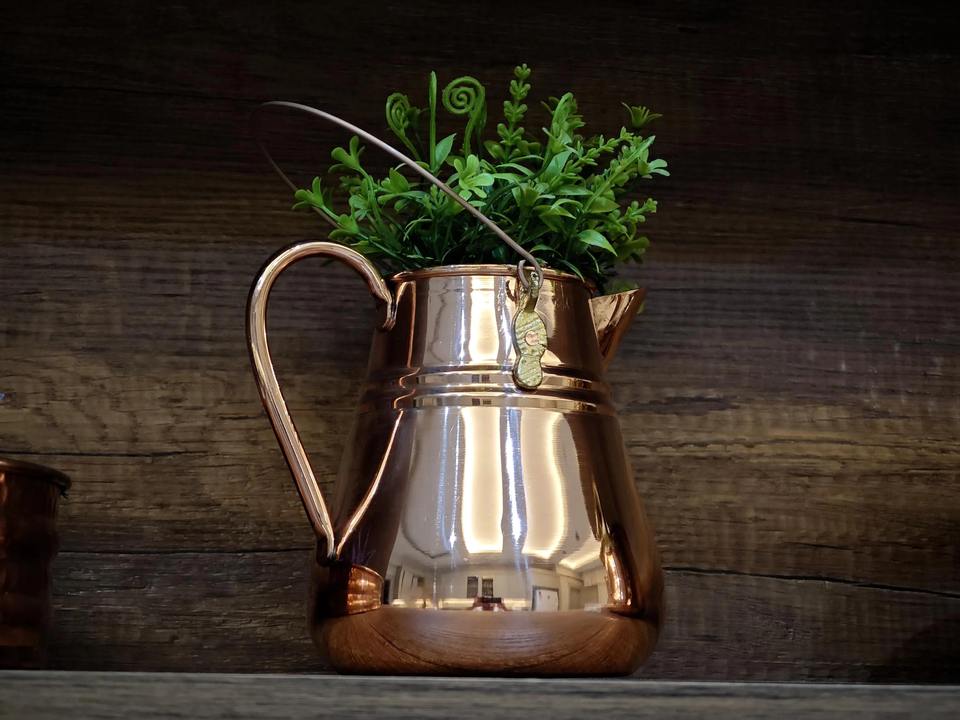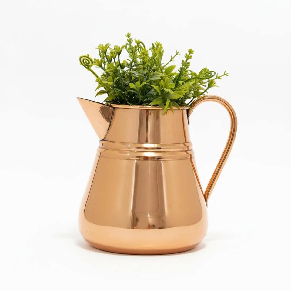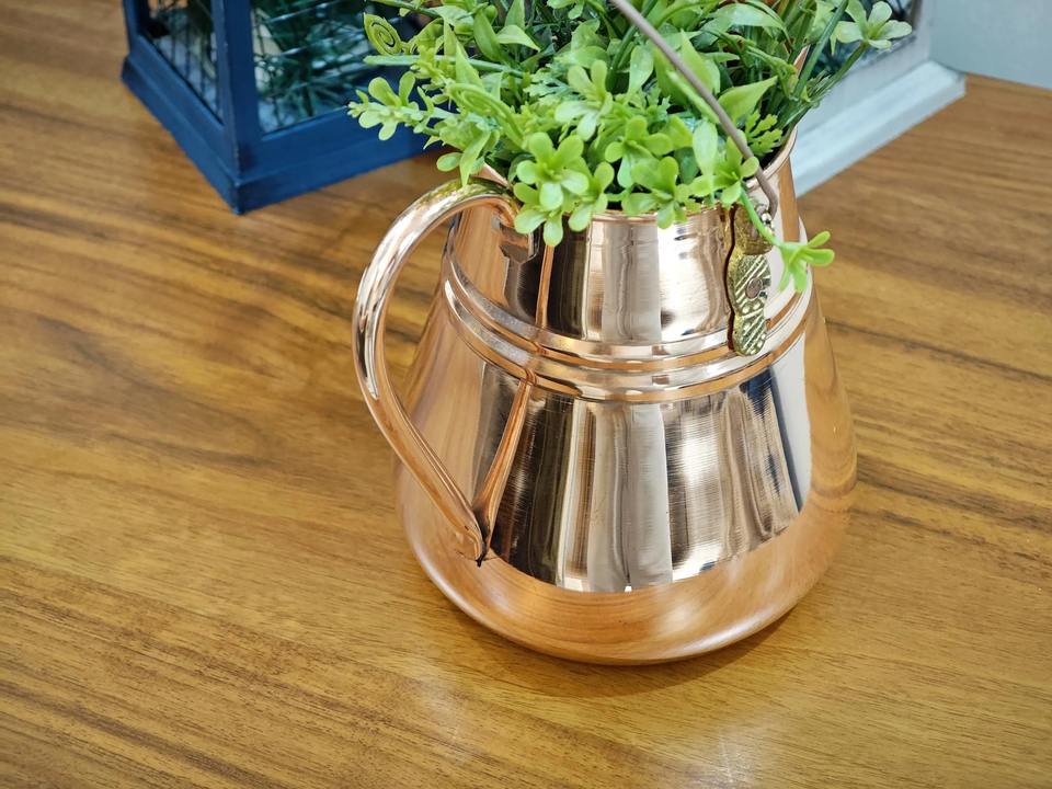 เหยือกทองแดงเคลือบผิวทนทาน เหมาะสำหรับการเสิร์ฟน้ำในครัวประจำวันและการรับประทานอาหารในครอบครัว ผลิตด้วยมือจากอินเดีย