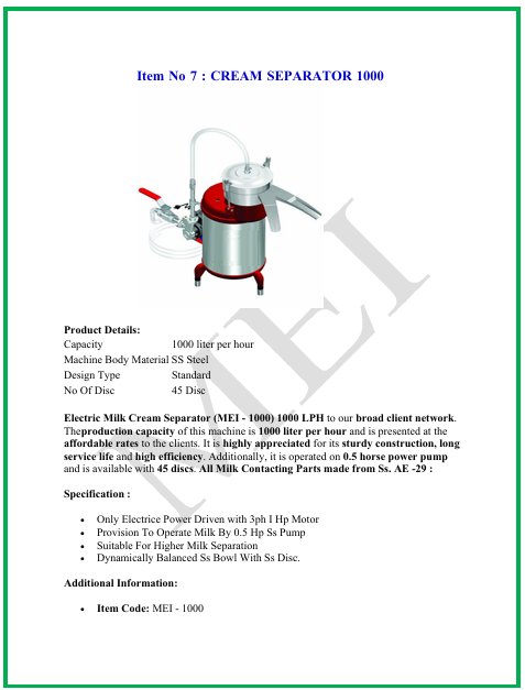 เลือกเลยmodel number: ตัวแยกครีม1000 ltrs