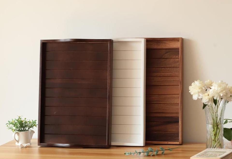 Durable Custom Solid Wood Serving Tray with Handles Rectangular Decorative Tray for Living Room Bedroom Entryway and Kitchen Use