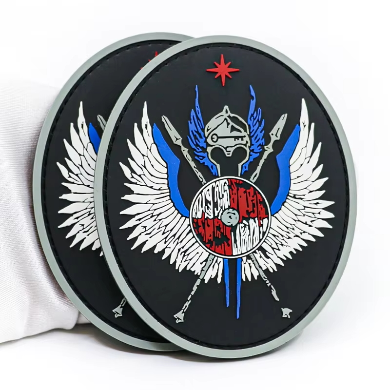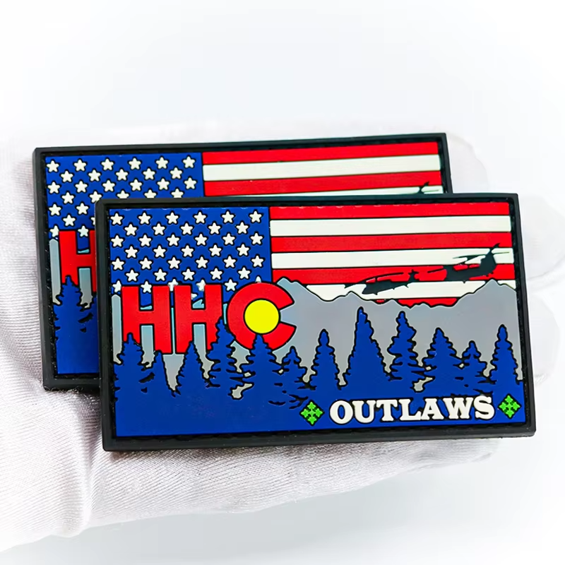 แผ่นพีวีซีแนวยุทธวิธีที่กำหนดเองพร้อมตะขอและห่วงทนทาน2D/3D โลโก้รูปหัวใจดอกไม้สำหรับเครื่องประดับเสื้อผ้า