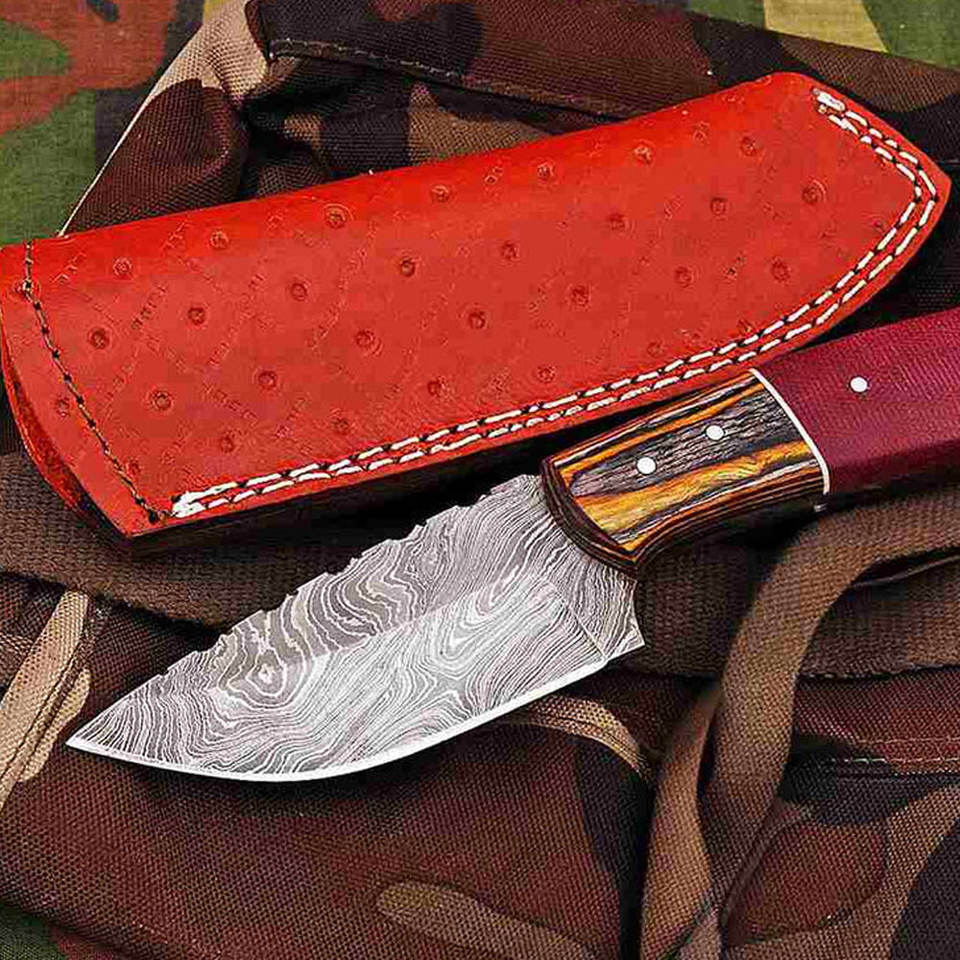 มีดสกินเนอร์เหล็กดามัสกัสทนทานเครื่องมือกลางแจ้งทำด้วยมือสำหรับค่ายและสะสมพร้อมฝาครอบหนัง