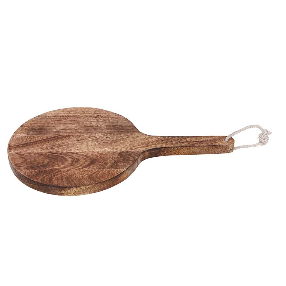 เขียงไม้ทรงกลม ดีไซน์ทนทาน ผิวสัมผัสแบบโบราณ ใช้ซ้ำได้ ปลอดภัยสำหรับเครื่องล้างจาน หนา 1.3 ซม. อุปกรณ์ครัวสำหรับการหั่น