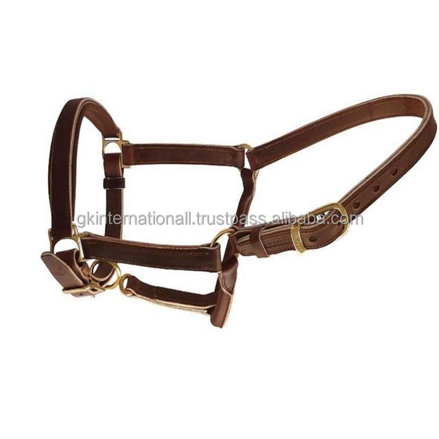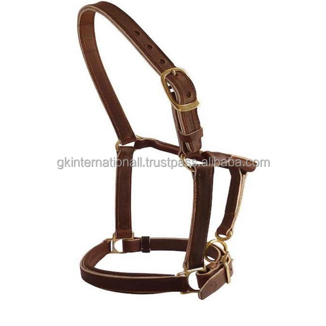 สายจูงม้าหนังแท้สองชั้น ทนทาน สีดำหรือสีน้ำตาลฮาวานา พร้อมอุปกรณ์ทองเหลืองปรับได้