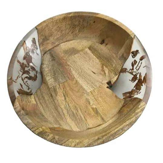 ชามเสิร์ฟไม้ธรรมชาติ ทนทาน เป็นมิตรกับสิ่งแวดล้อม ดีไซน์หรูหรา พร้อมตกแต่งด้วยงานเรซิ่น เหมาะสำหรับสลัด ผลไม้ อาหารแห้ง และงานเลี้ยง
