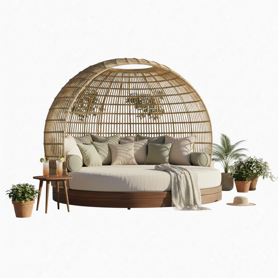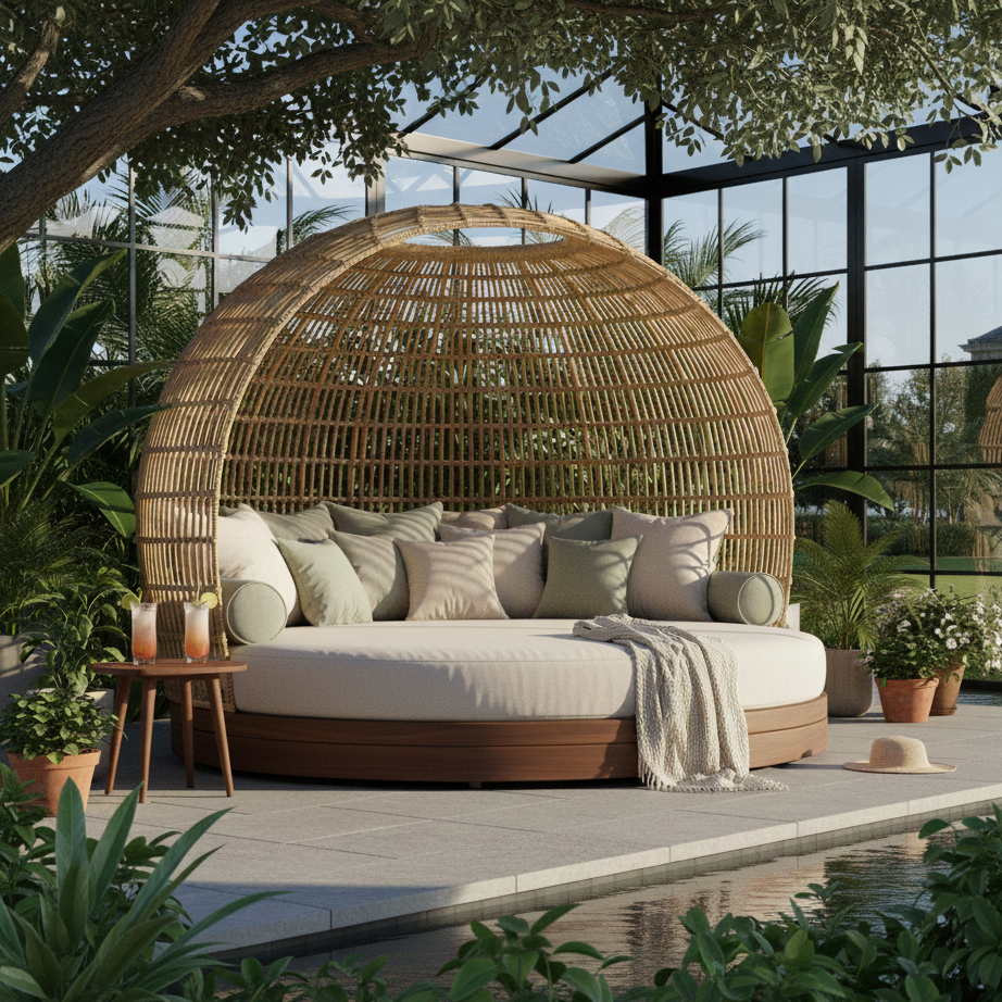 เตียงอาบแดดหวายแบบพกพา ทนทาน เป็นมิตรกับสิ่งแวดล้อม ทันสมัย ป้องกันรังสียูวี พร้อมเบาะฟองน้ำ สำหรับใช้ในโรงแรม วิลล่า และกลางแจ้ง