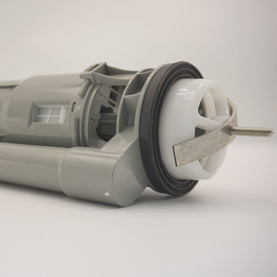 วาล์วชักโครกแบบกดมือ ทำจากพลาสติก ABS ทนทาน เป็นมิตรกับสิ่งแวดล้อม ประหยัดน้ำ พร้อมปลายท่อระบายน้ำยาง สำหรับโถสุขภัณฑ์แบบชิ้นเดียว