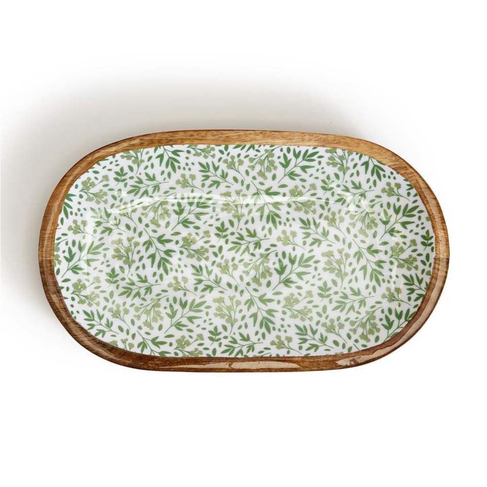ถาดไม้มะม่วงเคลือบอีนาเมลทนทาน | ถาดเสิร์ฟอาหารไม้ลายเพ้นท์มือสไตล์อินเดีย กันน้ำ สำหรับตกแต่ง