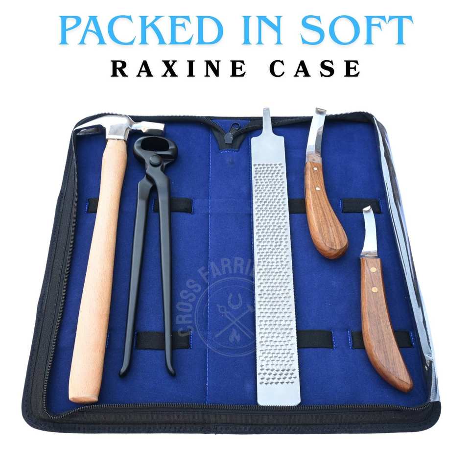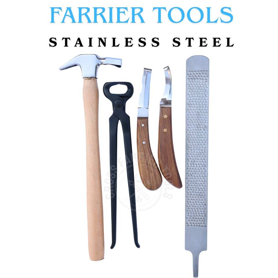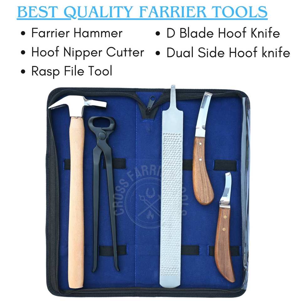 Farrier Tools Kit for Professional Hoof Work with Nail Driving Hammer