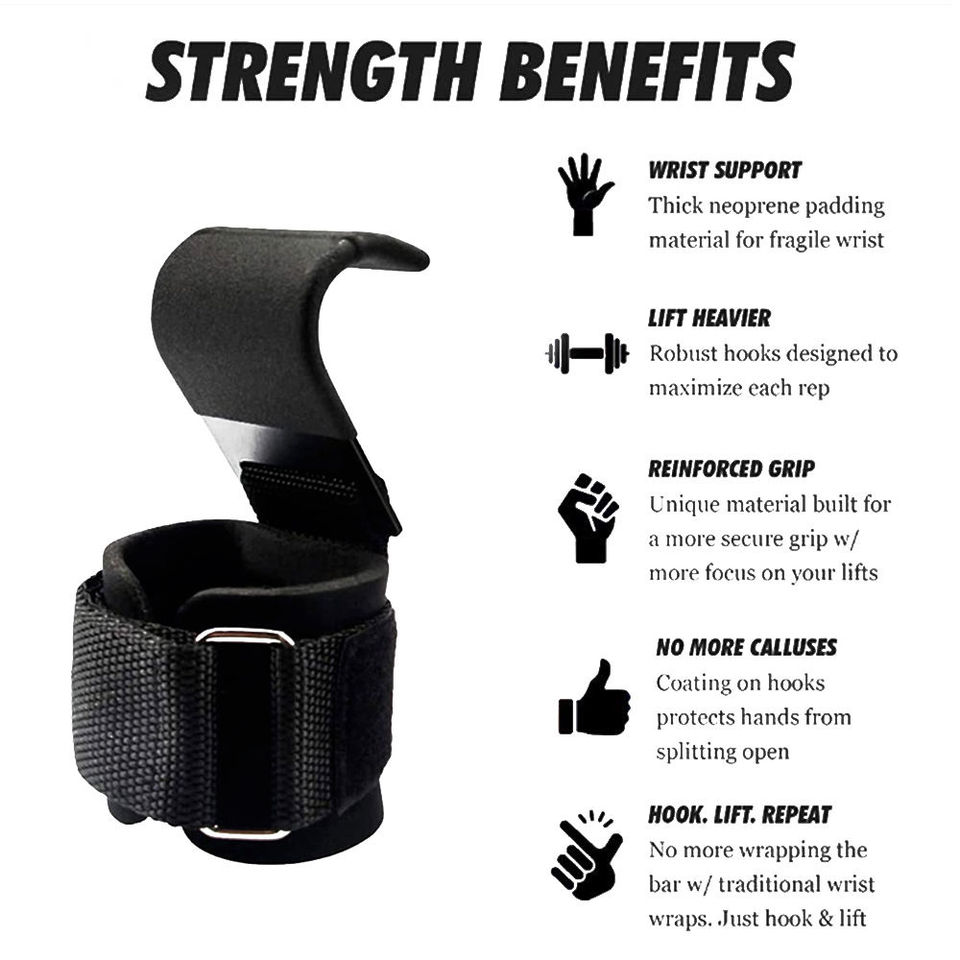 ตะขอเกี่ยวสำหรับยกน้ำหนัก ทนทาน เหมาะสำหรับการฝึกเวท เพาเวอร์ลิฟติ้ง เพาะกาย ครอสฟิต และการออกกำลังกายในยิม