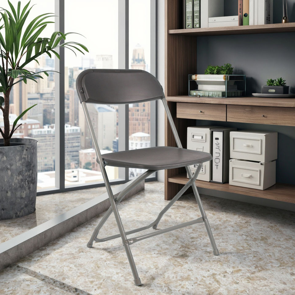 เก้าอี้พับพลาสติกสีเทาด้านหลังแบนทนทานเหมาะสำหรับพื้นที่สำนักงานสมัยใหม่สำหรับโรงเรียนโอกาสทางสังคมและงานแสดงสินค้า