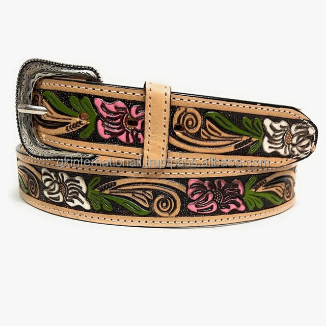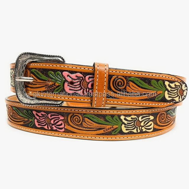 เข็มขัดหนังแท้สไตล์ตะวันตกสำหรับผู้ชาย ลายแกะสลักและเพ้นท์สีสันสดใส ทนทาน เหมาะสำหรับใส่กับกางเกงยีนส์หรือกางเกงขายาว