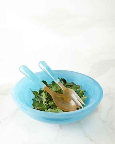 ชามเสิร์ฟเรซิ่นเกรดอาหารที่ทนทานพร้อมชุดช้อนสำหรับเสิร์ฟสลัด ของว่าง ผลไม้ และอาหารแห้ง