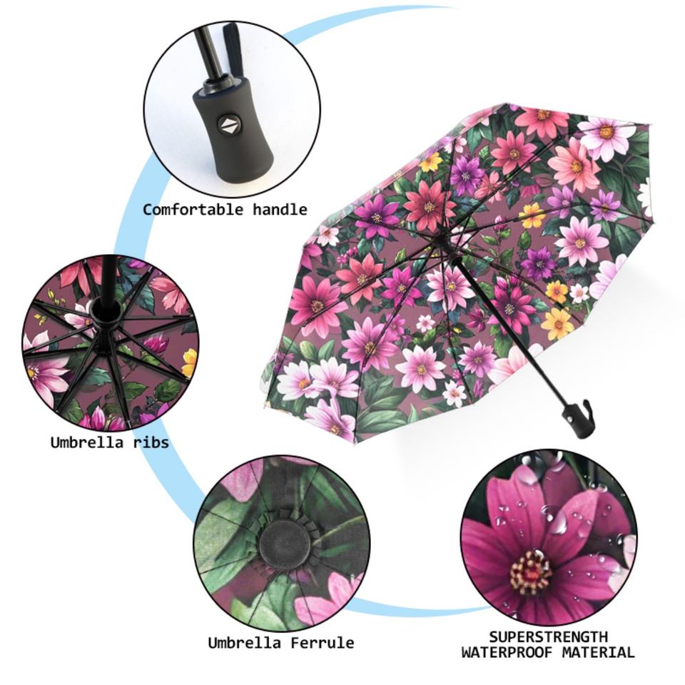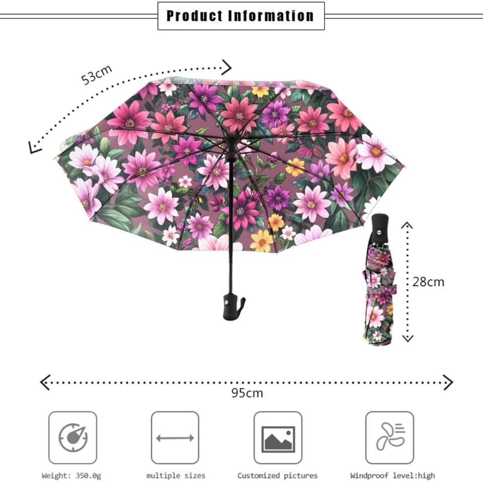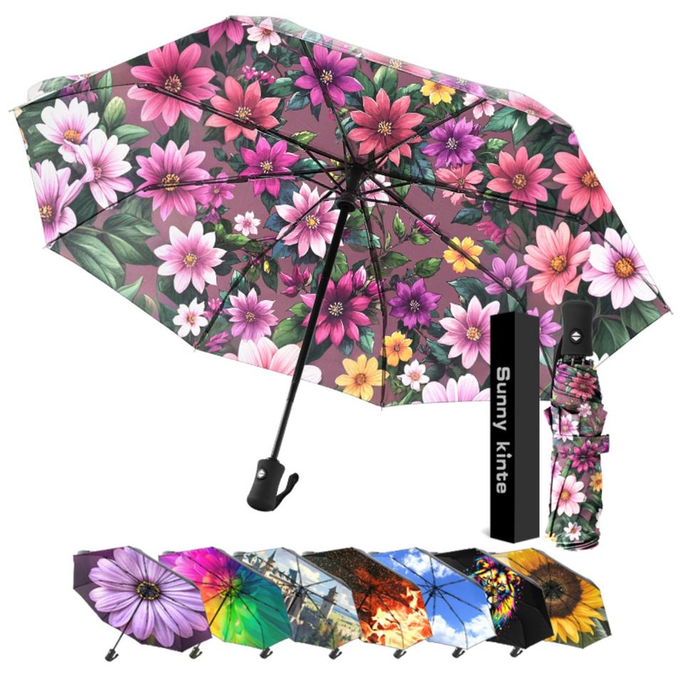 ร่มพับอัตโนมัติ 8 ซี่โครง ทนทาน พิมพ์ลายเต็มผืน เป็นมิตรกับสิ่งแวดล้อม ขนาดกะทัดรัด สำหรับรถยนต์ กระเป๋าเป้สะพายหลัง และกระเป๋าถือ