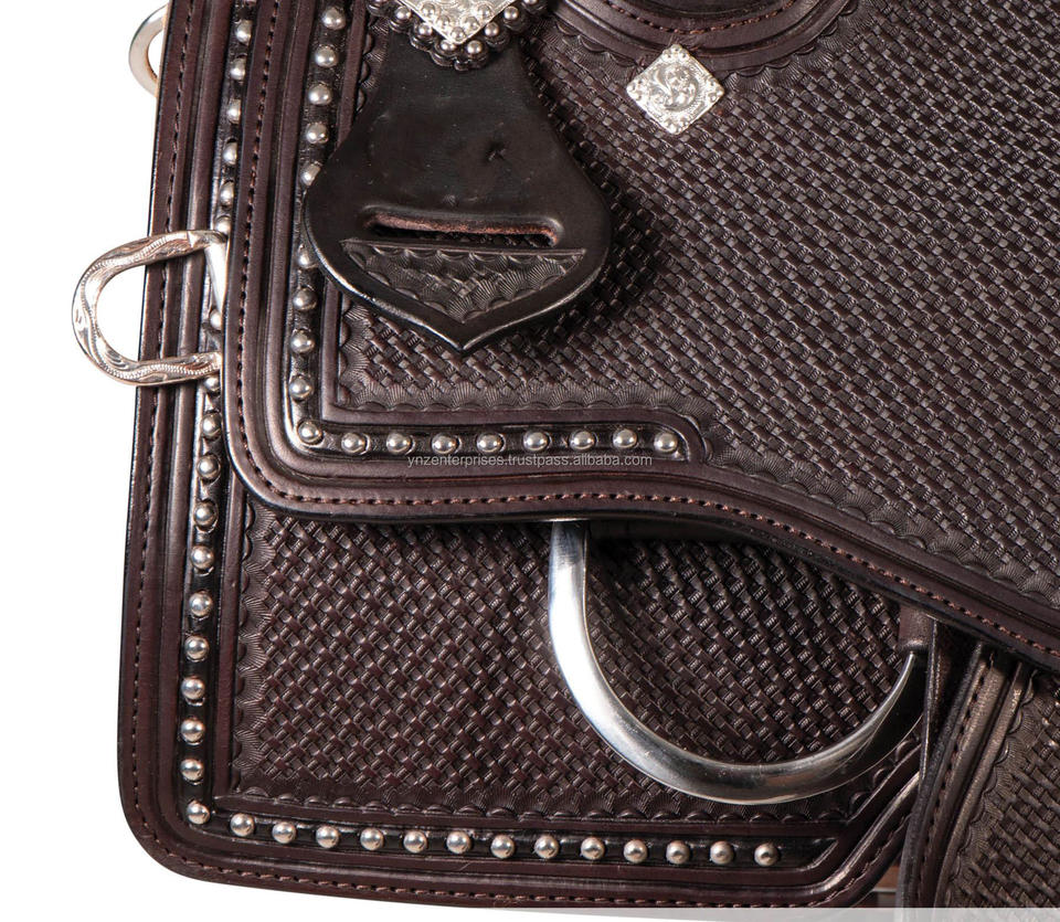 ชุดหมุดหนังวัวแท้แบบตะวันตกสำหรับอานม้าหนังวัวแท้ทนทานเบาะหนังธรรมชาติแบบนุ่มฮาร์ดแวร์เป็นสแตนเลส