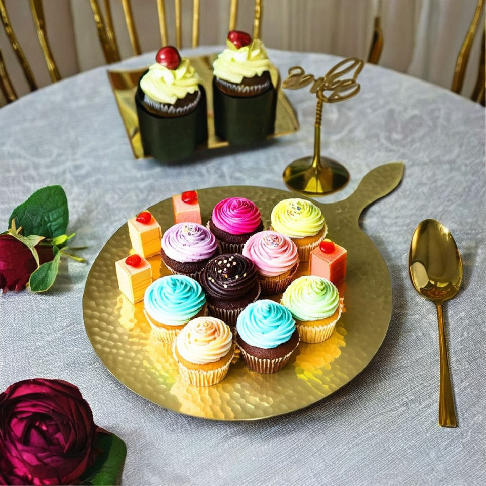 ถาดเสิร์ฟขนมและชีสโลหะอะลูมิเนียมขัดเงาสีทอง ดีไซน์ลายตอก สำหรับใช้ในครัวหรืองานปาร์ตี้ จำนวน 100 ชิ้น