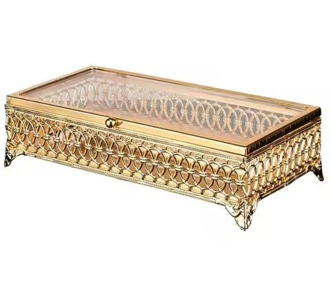 กล่องใส่เครื่องประดับทำจากโลหะสีทองใสกรอบทำจากแก้วสีทองใสกล่องใส่เครื่องประดับใช้อเนกประสงค์