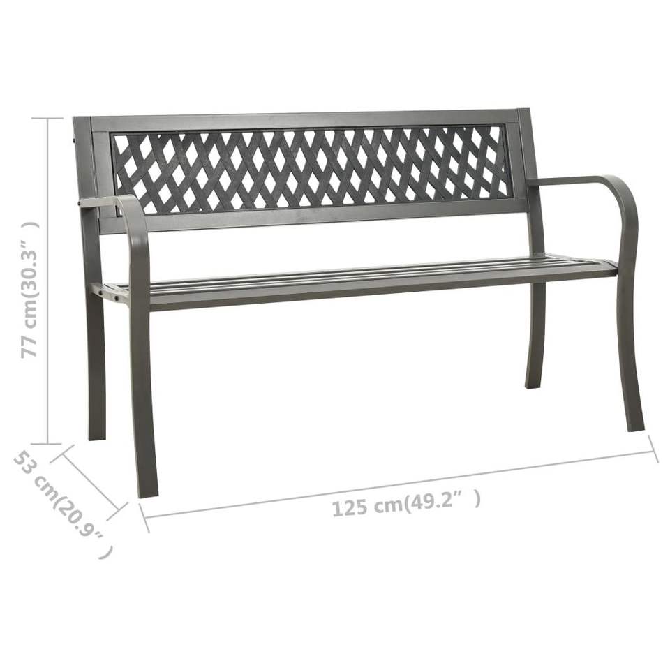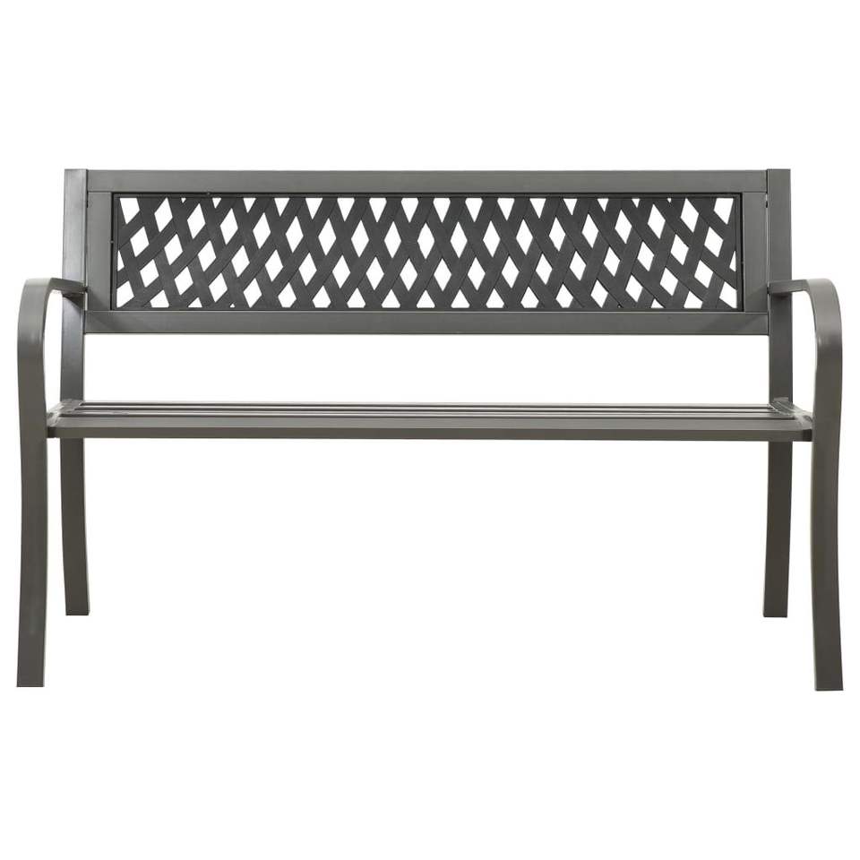 Durable Grey Powder-Coated Steel Garden Bench with Plastic Stylish Patio Furniture