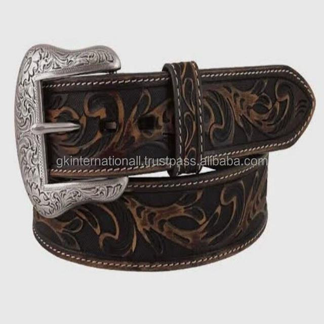เข็มขัดหนังแบบตะวันตกสำหรับผู้ชายและผู้หญิงชุดหัวเข็มขัดลายดอกไม้แกะสลักด้วยมือที่ทนทาน