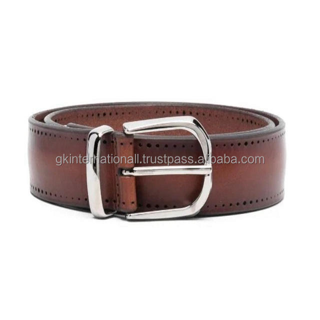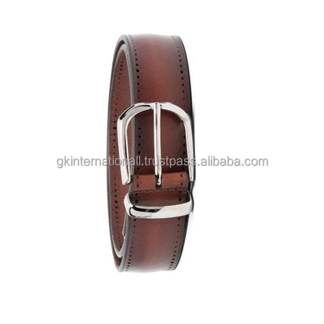 เข็มขัดหนังแฟชั่นลำลองสำหรับผู้ชายทำด้วยมือทนทานพร้อมหัวเข็มขัดอัตโนมัติชุบนิกเกิลแบบกำหนดเอง