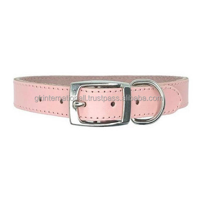 ปลอกคอสุนัขหนังสีชมพูหรูหราแฮนด์เมดทนทานหนังสีชมพูเรียบพร้อมเย็บเต็มและแหวน D หัวเข็มขัดชุบนิกเกิล
