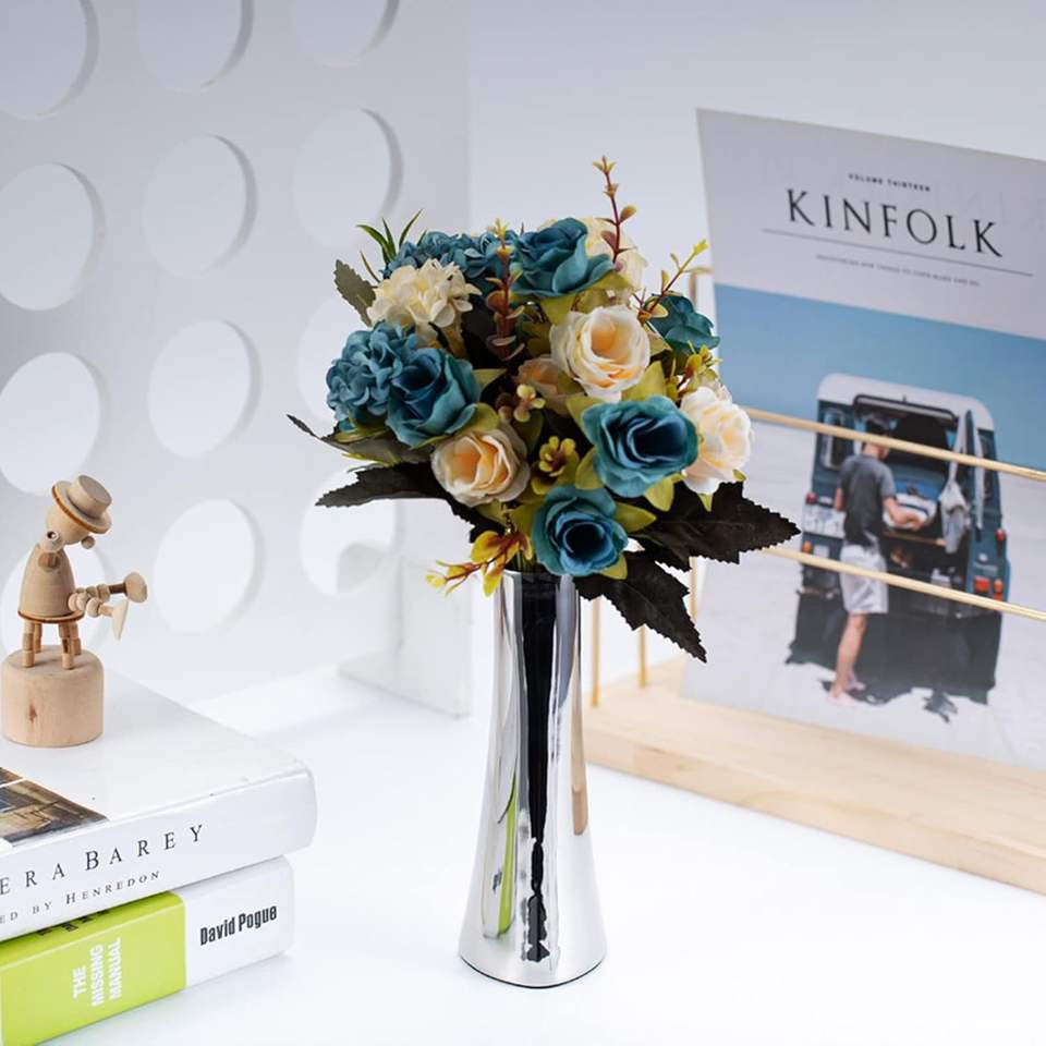 แจกันดอกไม้โลหะทำด้วยมือทนทานสำหรับเก็บดอกไม้สดและประดิษฐ์ในห้องนั่งเล่นโต๊ะรับประทานอาหารและของตกแต่งงานแต่งงาน