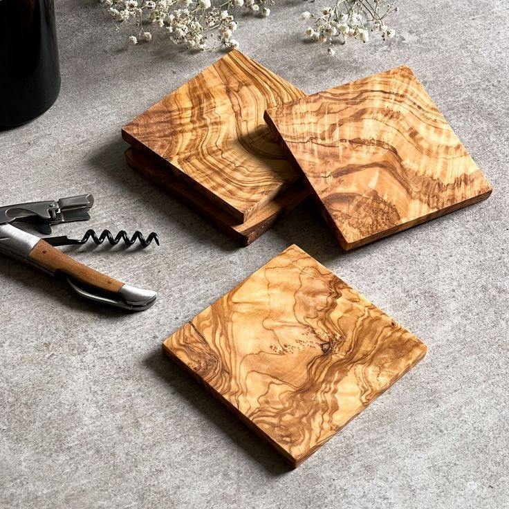 แผ่นรองแก้วไม้ทำมือ ทนทาน สำหรับเคาน์เตอร์บาร์ แผ่นรองเครื่องดื่มไม้ธรรมชาติ ป้องกันโต๊ะอย่างมีสไตล์