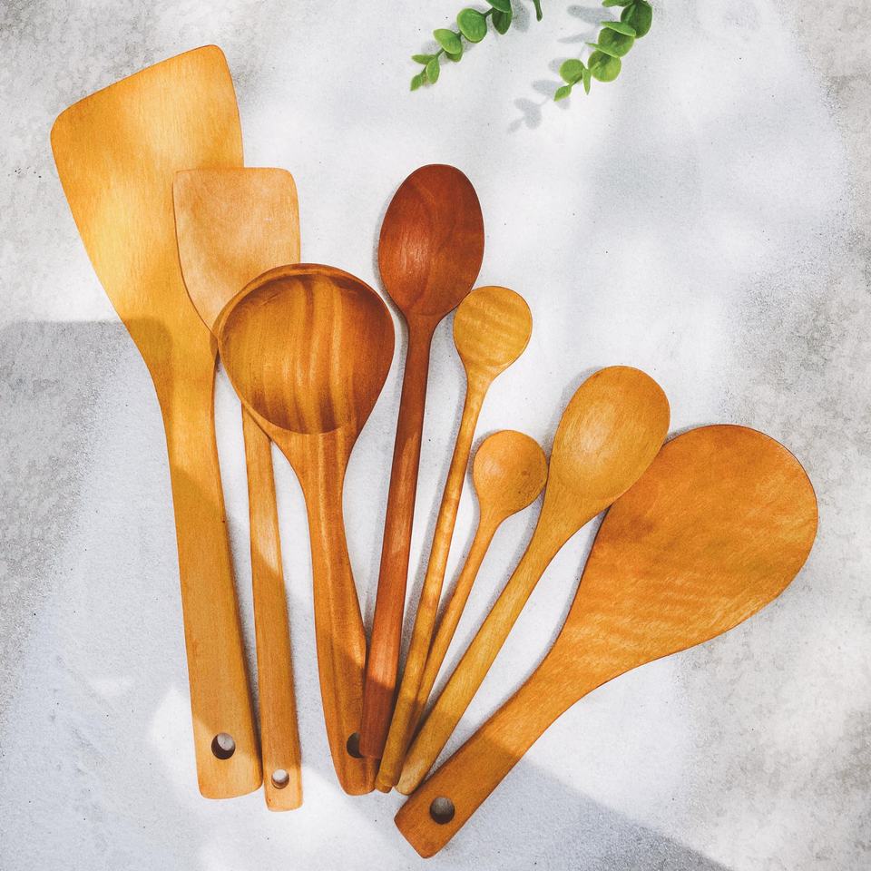 ช้อนไม้เนื้อแข็งทนทานสำหรับใช้ในครัวสไตล์เวียดนามช้อนตักซุปข้าวสำหรับเตรียมอาหาร