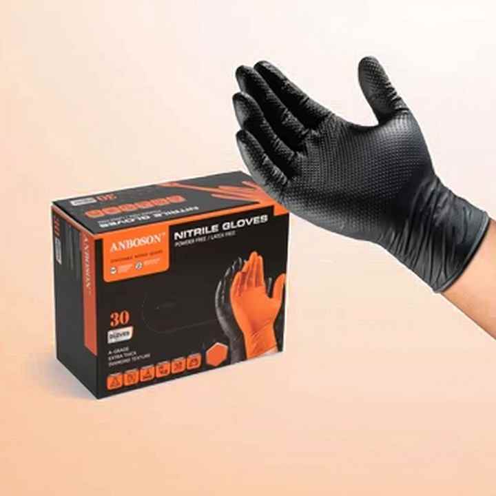 ถุงมือยางไนไตรล์สีส้ม8Mil ทนทานทนทานใช้ในงานอุตสาหกรรมใช้แล้วทิ้งกันน้ำปราศจากผงยางและเพชรแบบนิ่ม