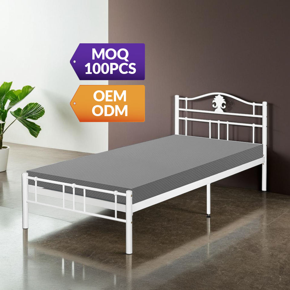 เตียงเหล็กพร้อมแผ่นเหล็กทันสมัยทนทานสำหรับงานหนักโครงเตียงโลหะสำหรับห้องนอนเดี่ยวสำหรับหอพัก