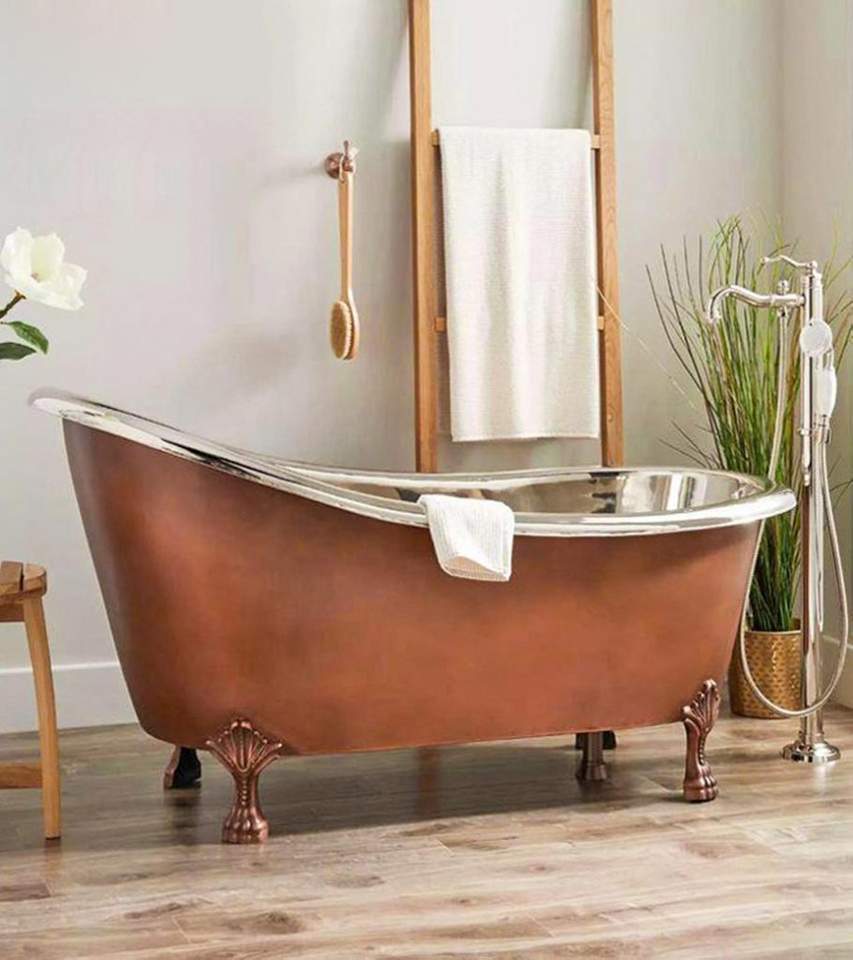 อ่างอาบน้ำทำจากทองแดงบริสุทธิ์ทนทานสูงอ่างอาบน้ำดีไซน์ทันสมัยตกแต่งห้องน้ำแบบยืนฟรีอินเดีย
