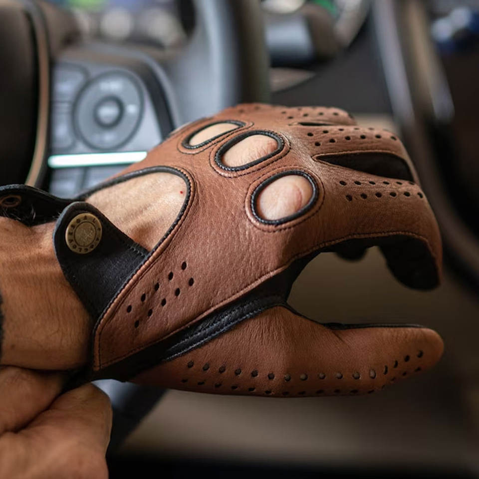 ถุงมือขับรถกันน้ำหนังแท้คุณภาพสูงพร้อมสายรัดข้อมือแบบปรับได้คุณสมบัติกันลื่นตามสไตล์ผู้เล่น