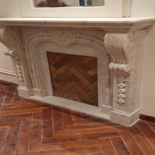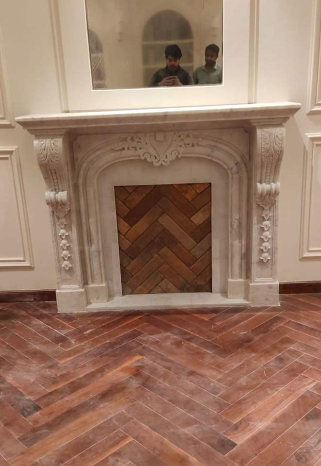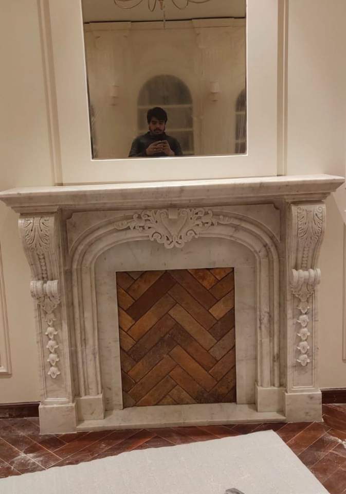 เตาผิงหินธรรมชาติหินอ่อนสีขาวทนทาน