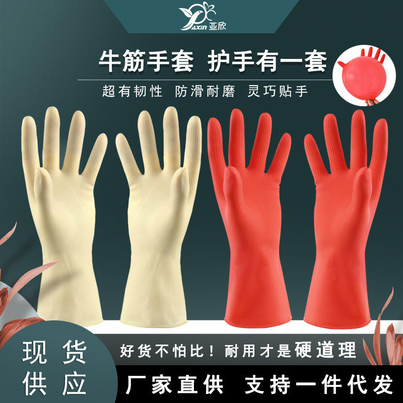 ถุงมือยางทนทานสำหรับใช้ในครัวเรือน ขนาด 28 ซม. กันน้ำ ทำจากยางลาเท็กซ์ สำหรับทำความสะอาดห้องครัวและล้างจาน