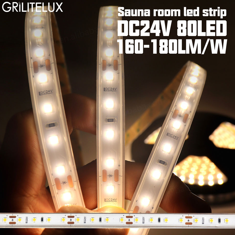 ไฟ LED แถบซิลิโคน SMD 3030 80LEDs/m 3000K-6000K ทนทาน กันน้ำ IP68 ทนความร้อน 24V ประสิทธิภาพสูง สำหรับห้องซาวน่า