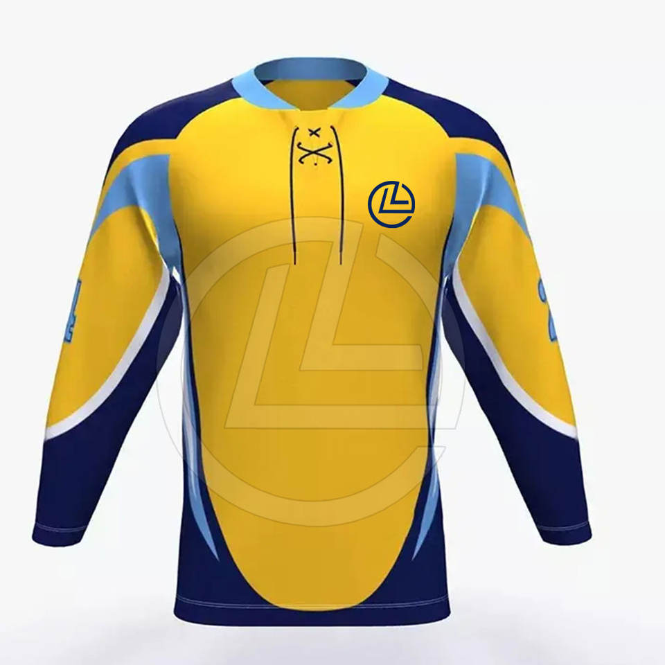 เสื้อกีฬาฮ็อกกี้น้ำแข็งที่ทนทานพร้อมผ้ากันการฉีกขาดสำหรับเกมรุนแรงเสื้อแฟนฮ็อกกี้น้ำแข็ง