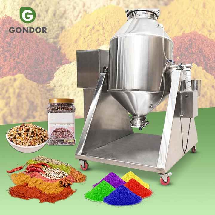 เครื่องปั่นผงทรงกรวยสี่เหลี่ยมทำจากสเตนเลสแบบหมุนอัตโนมัติเมล็ดในห้องทดลองทนทานเครื่องผสมอาหารแบบห่วง