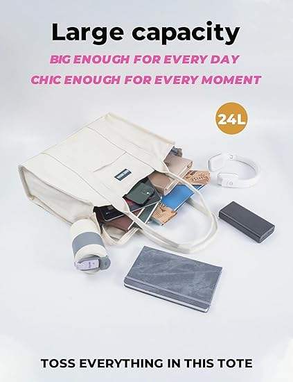 กระเป๋าผ้าใบขนาดใหญ่ที่ทนทานพร้อมช่องปิดซิปกระเป๋าแล็ปท็อปและกระเป๋าชายหาดสำหรับใช้ในชีวิตประจำวัน