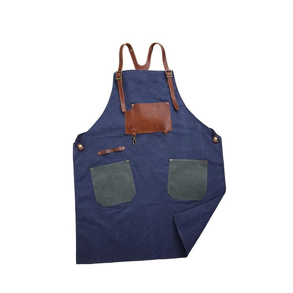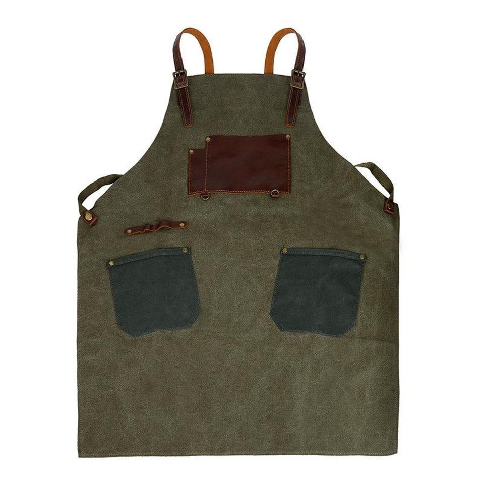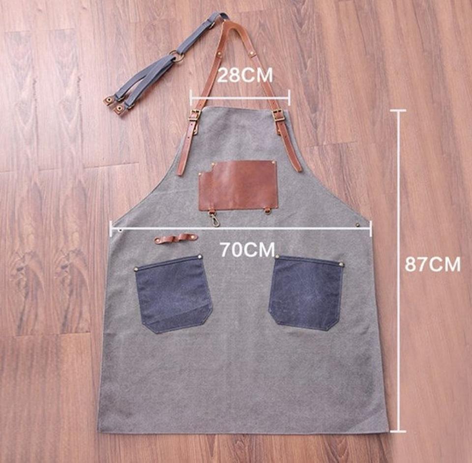 กระเป๋าใส่ผ้ากันเปื้อนหนังและผ้าแคนวาส ทนทาน กันน้ำ กันกระแทก สายสะพายหลังปรับได้ เหมาะสำหรับเชฟ บาร์บีคิว บาริสต้า ช่างตัดผม ช่างไม้ ช่างซ่อม