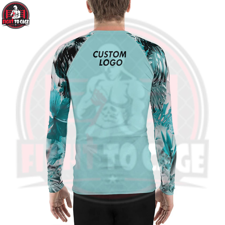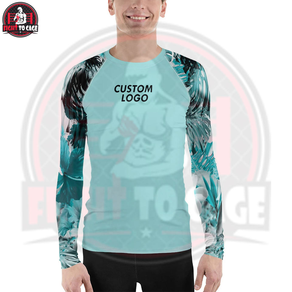 เสื้อรัดกล้ามเนื้อ MMA สำหรับผู้ชาย ทนทาน น้ำหนักเบา โลโก้สั่งทำได้ แห้งเร็ว แขนยาว ผลิตจากผ้าโพลีเอสเตอร์/สแปนเด็กซ์/ไนลอน 220 กรัม