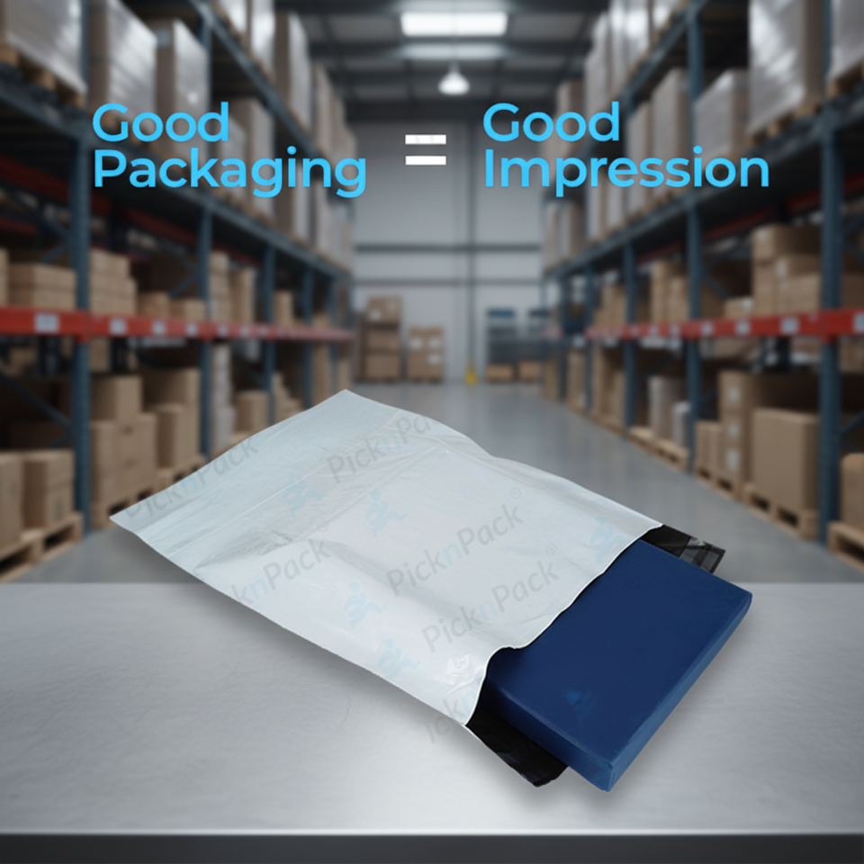 ถุงส่งของกันน้ำแบบธรรมดา ทนทาน น้ำหนักเบา ขนาด 16x20 นิ้ว (52 ไมครอน/1.5 มิล) | ถุงไปรษณีย์กันการงัดแงะสีดำขาว