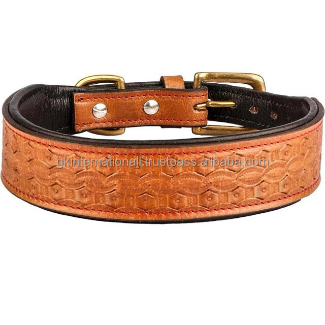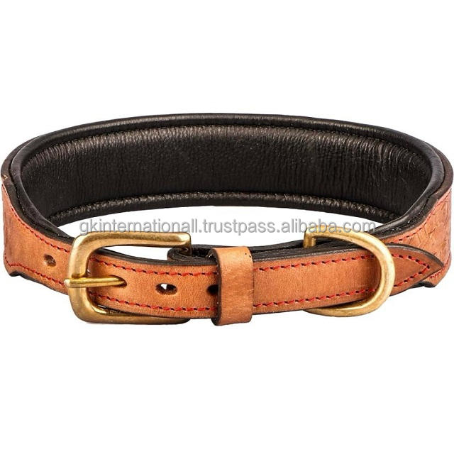 ปลอกคอสุนัขหนังสีน้ำตาลทำมือพร้อมแผ่นรองนุ่มและห่วงรูปหัวเข็มขัดและห่วงรูปตัว D แบบตะวันตกที่ทนทานยาวนาน