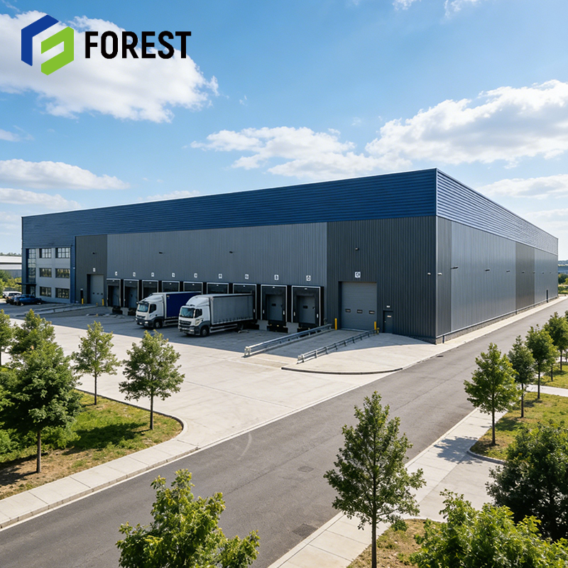 อาคารศูนย์โลจิสติกส์ที่ทนทาน ต้องการการบำรุงรักษาต่ำ โครงสร้างเหล็กอุตสาหกรรม โกดังเก็บสินค้า โรงงาน