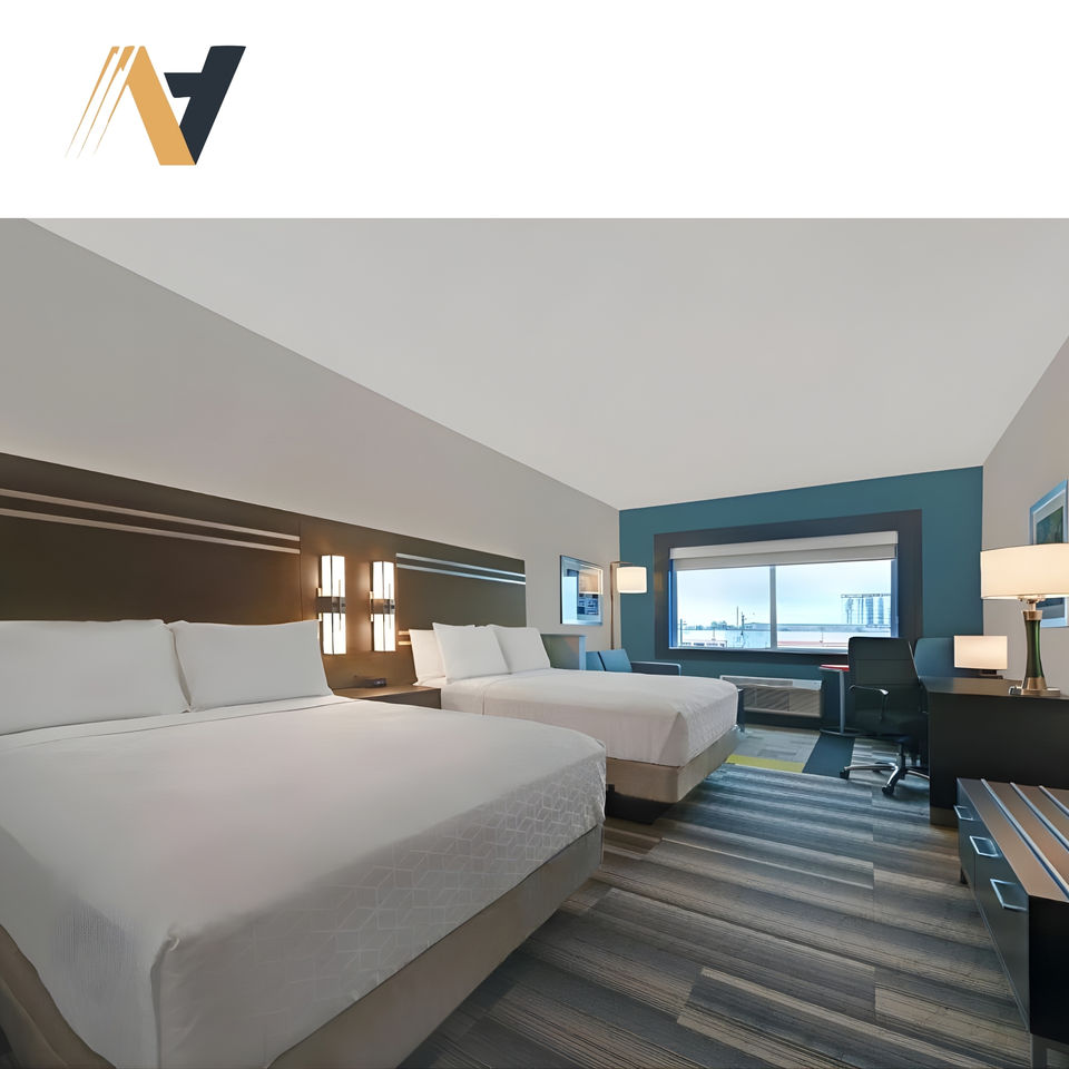 ชุดเฟอร์นิเจอร์ห้องนอนโรงแรม MDF ทนทาน สำหรับการปรับปรุงและอัพเกรดห้องพักเชิงพาณิชย์ โฮเทลฮอลิเดย์อินน์
