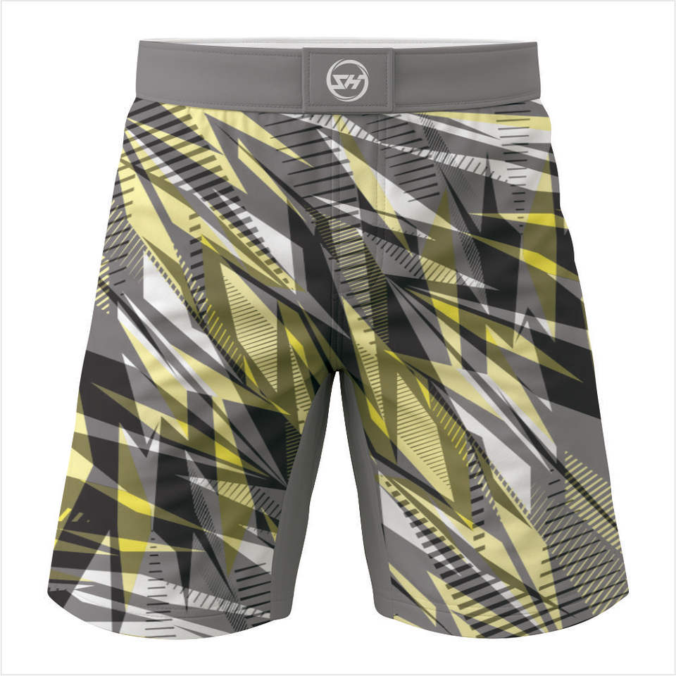 กางเกงขาสั้น MMA ปักลายดอกไม้สำหรับผู้ชายผ้าระบายอากาศมีระบายลายดอกไม้สำหรับต่อสู้คิกบ็อกซิ่งชุดออกกำลังกาย