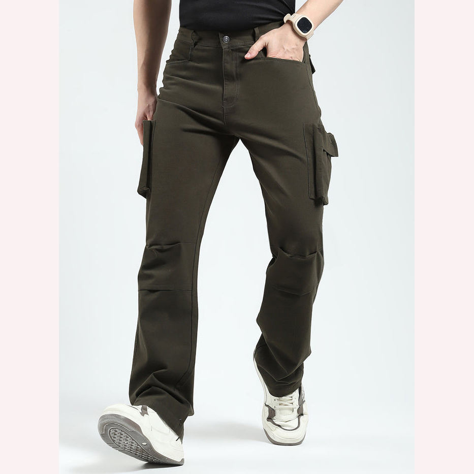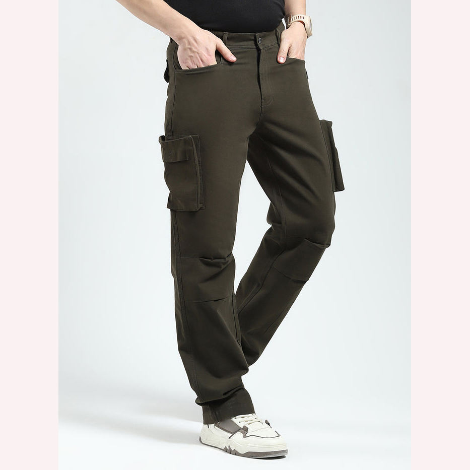 กางเกงคาร์โก้ผู้ชายแบบตรงมีกระเป๋าหลายใบมีหลายกระเป๋าใส่สบายกางเกงผู้ชายซักได้